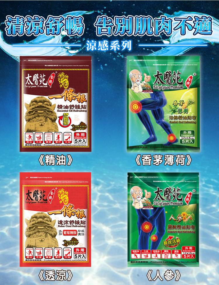 貼布:1.依使用部位情況增減使用次數,建議一片貼於皮膚4-6小時,休息1個小時,視情況再繼續貼用。2.請先將使用部位清潔乾燥後,再予貼上。