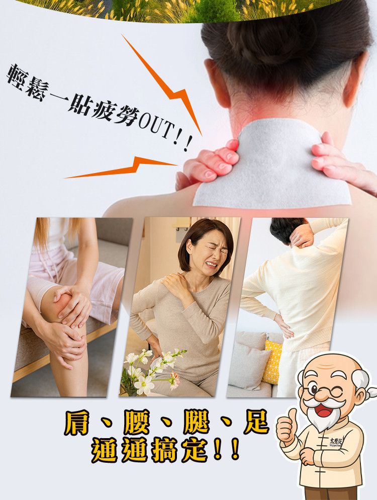 貼布:1.依使用部位情況增減使用次數,建議一片貼於皮膚4-6小時,休息1個小時,視情況再繼續貼用。2.請先將使用部位清潔乾燥後,再予貼上。